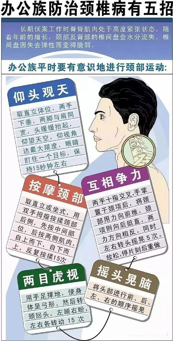 3、多活動,勤做頸椎保健操